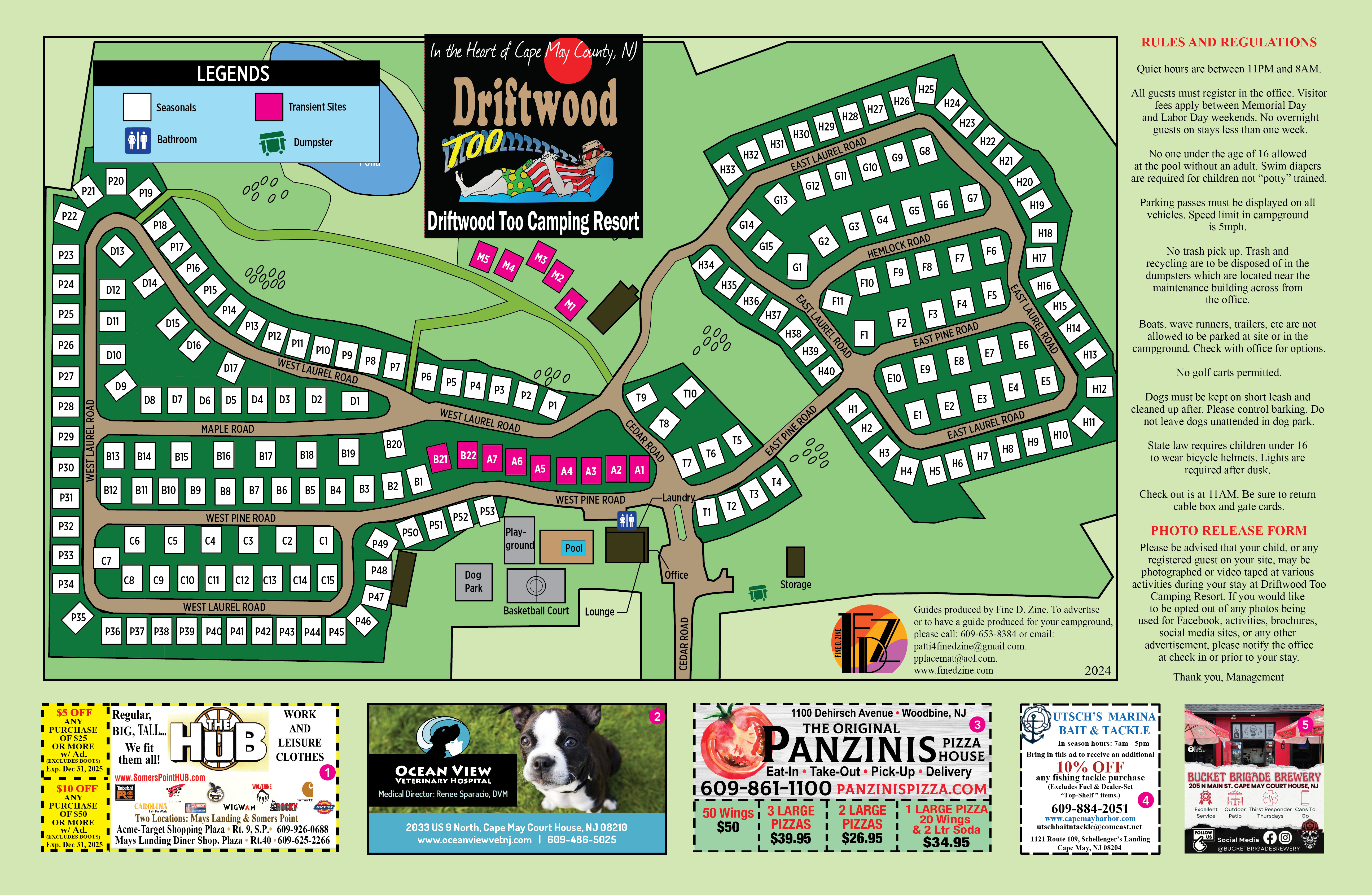 © Driftwood Too Camping Resort - All Rights Reserved. 1142 New Jersey 83, Cape May Court House, NJ 08210 - Call: 1 (800) 874-7576 - Web Site Designed By: